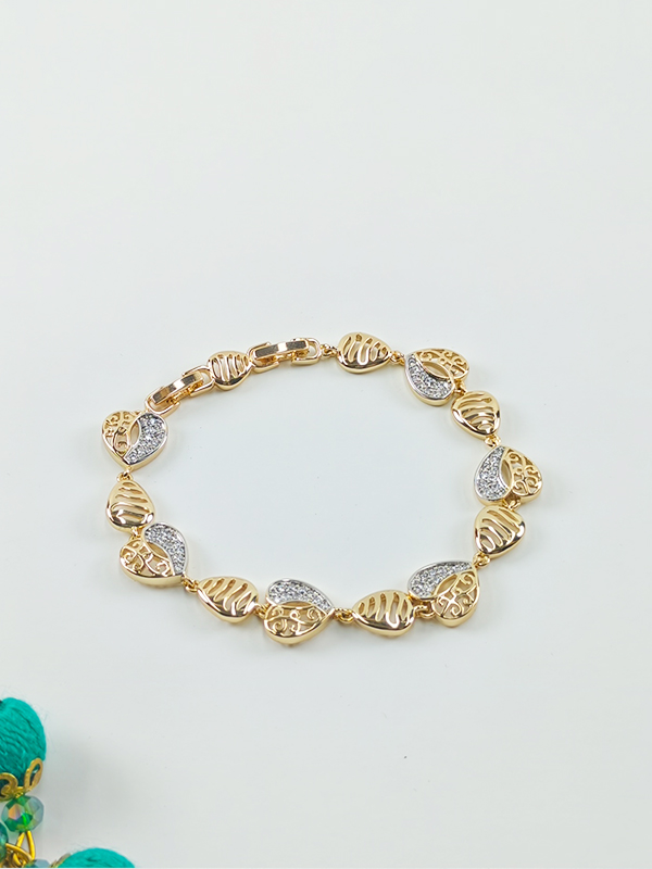 Adorn your wrist with timeless elegance. The Xuping Heart Bracelet features delicate filigree teardrops and sparkling crystal hearts in a warm rose gold finish — a piece that whispers luxury in every link.