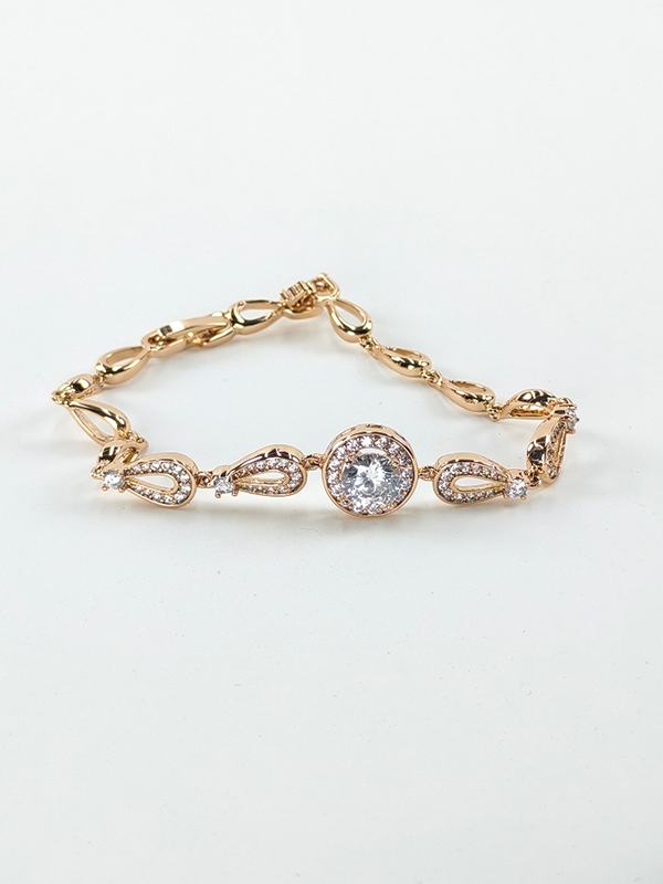 A bracelet that commands every room it enters. The Xuping Golden Halo Solitaire Bracelet features a brilliant round CZ centerpiece wrapped in a pavé halo, linked by glittering teardrop motifs in a rich gold finish — effortlessly bridal, timelessly luxurious.