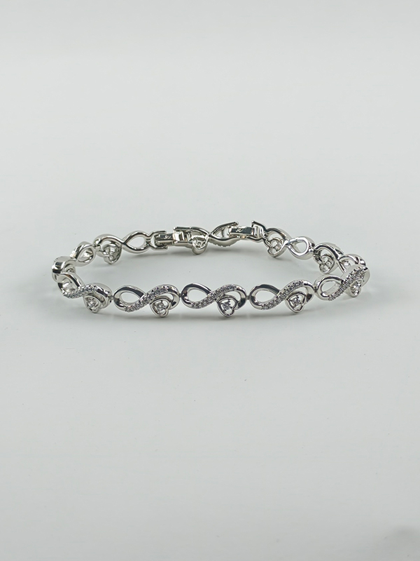 Love, infinite and timeless. The Xuping Silver Infinity Heart Bracelet weaves sparkling pavé infinity twists with delicate open hearts, each cradling a brilliant solitaire crystal — a bracelet that speaks the language of forever.
